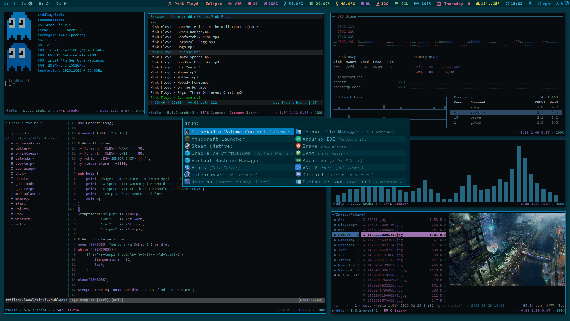 - Andrea Denisse: https://github.com/da-edra -> beautiful i3blocks and neofetch pacman image