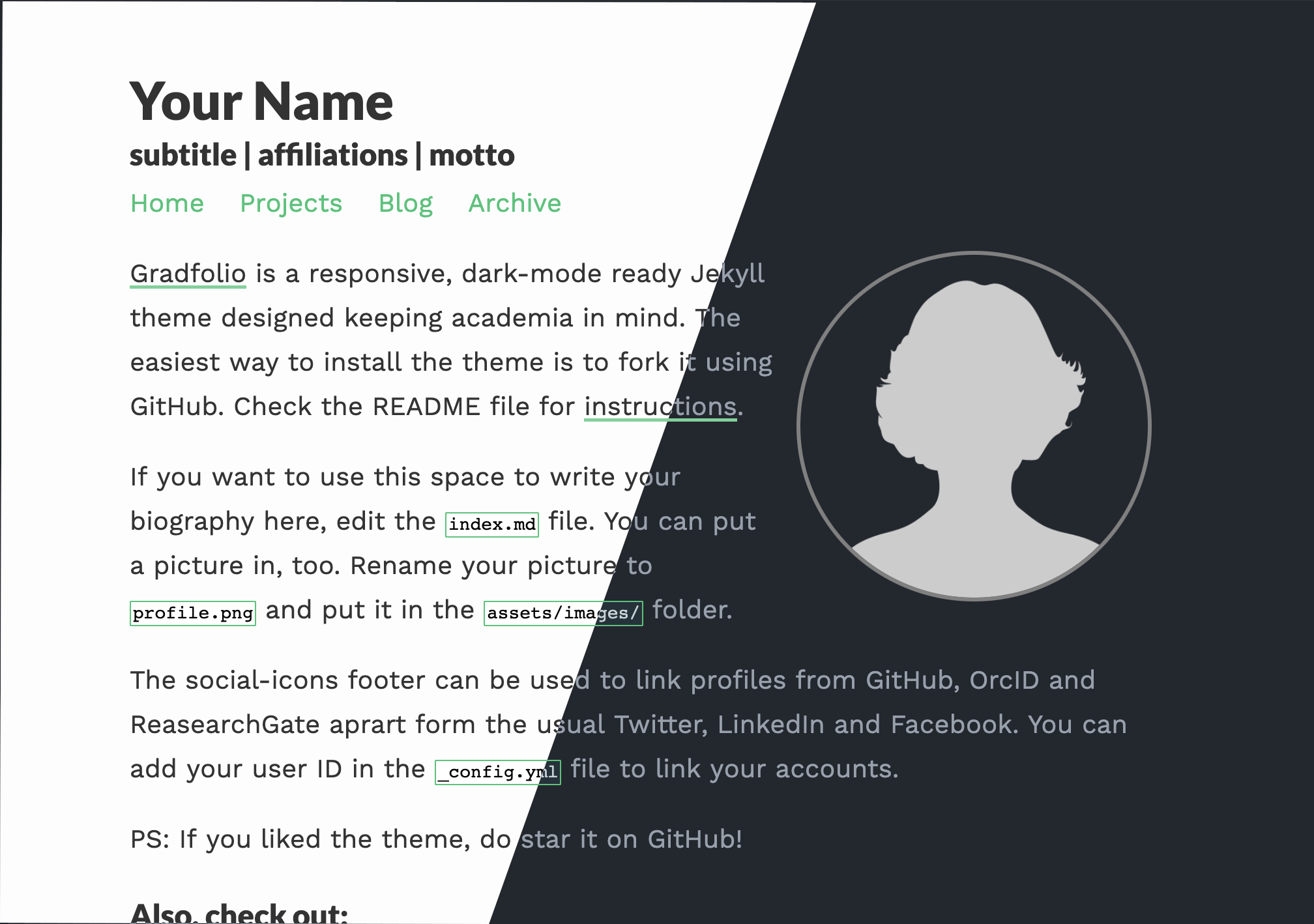 responsive, dark-mode ready Jekyll theme designed for use as a personal website and portfolio. Here's a live demo