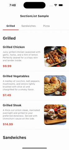 SectionList supports these platforms: