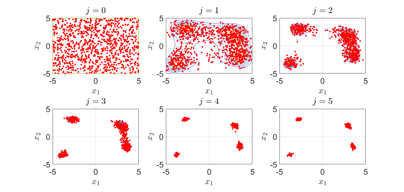 samps, Log_ev = tmcmc(logLik, logprior, priorRnd, 2000)