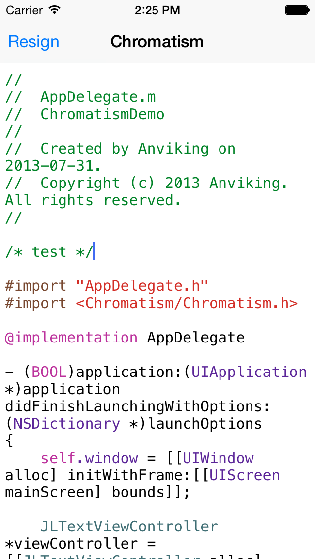 iOS Syntax highlightning using Swift built for performance, but still at a very experimental non-reliable state.