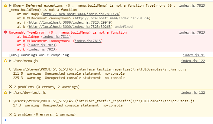 Cette semaine, effectuer un pull m'a donné un projet qui ne fonctionnait pas, sans image d'aucune sorte, avec un fichier css manquant, corrigé ici depuis le fichier index.ejs, mais aussi l'erreur suivante, indiquant que BuildMenu n'est pas une fonction.