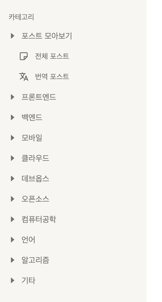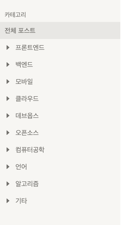 기존에는 사이드바 카테고리가 모두 expandable 해서, "전체 포스트" 메뉴를 보려면 불필요한 상위 카테고리를 만들어야 했음.