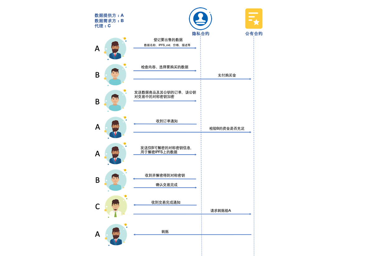 We design a data privacy mechanism that allows users to conduct private transactions on cpchain in a secure manner. Other than the valid participants, no one else has the ability to see the transaction. While private transactions are invisible for outsiders, we keep critical footprint of a transaction on chain for later audition.