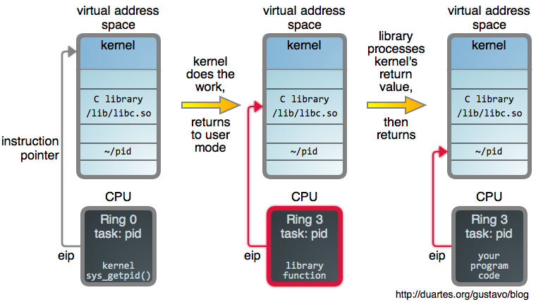 #Introduction In computing, a system call is how a program requests a service from an operating system's kernel. This may include hardware-related services (for example, accessing a hard disk drive), creation and execution of new processes, and communication with integral kernel services such as process scheduling. System calls provide an essential interface between a process and the operating system.