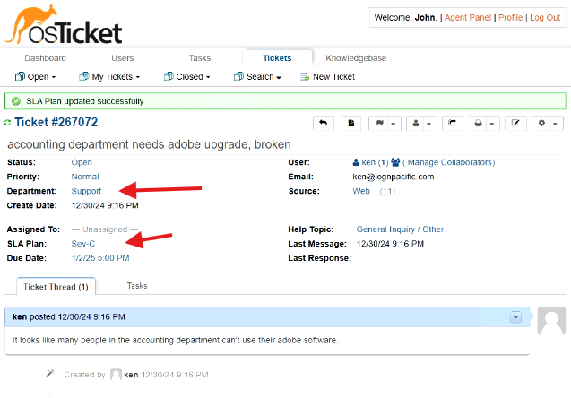 - Log back in as Help Desk Agent (john).