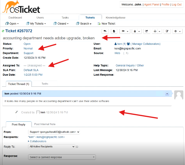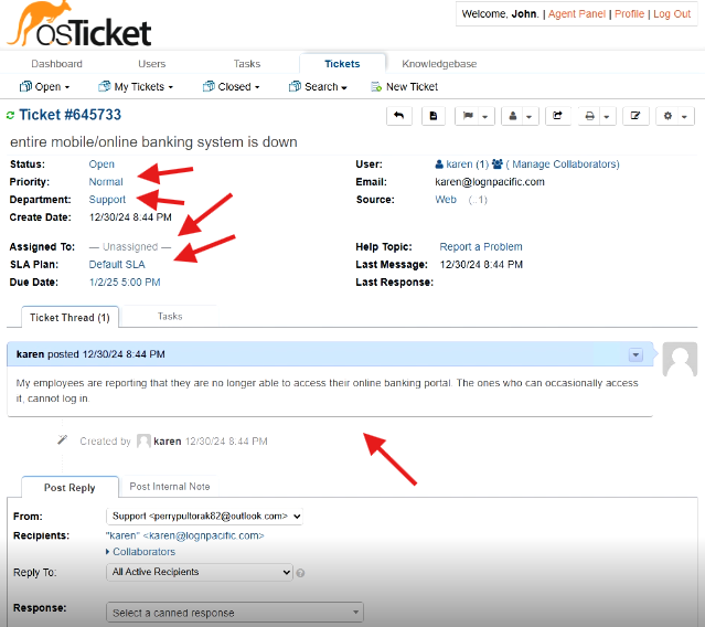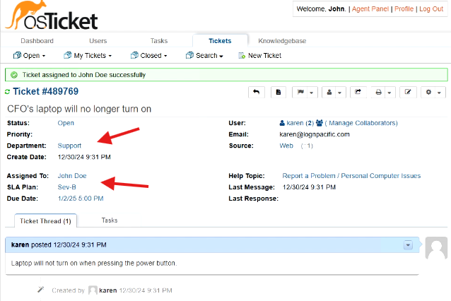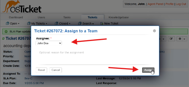 By following these steps, you have successfully demonstrated the lifecycle of a ticket from intake to resolution within osTicket. This lab highlights the importance of ticket properties, proper assignment, and resolution processes in a help desk environment.