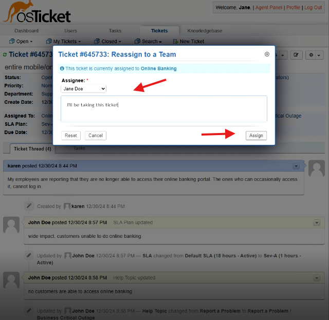 - Take ownership of the ticket, work the issue, and resolve it.