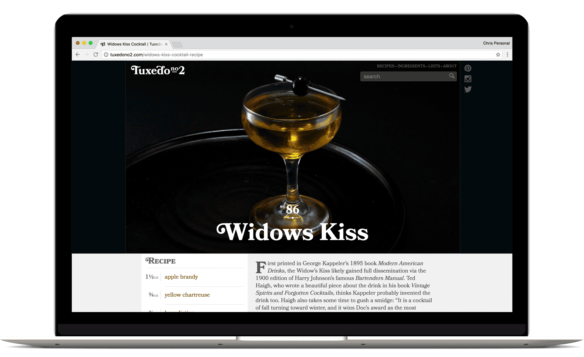 Tuxedo No.2 is an online cocktail resource. It emulates the creativity, curation, and organizational principles of great printed cocktail books, but recipes are indexed, searchable, and free.