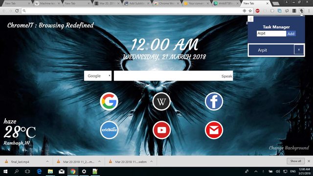Chrome-It is an extension which acts as an personal assistant helping in performing daily tasks & an attempt to contribute towards improving the browsing experience of the physically challenged people even in the smallest ways. Besides, it also includes a huge lot of features which are focused on the youth.