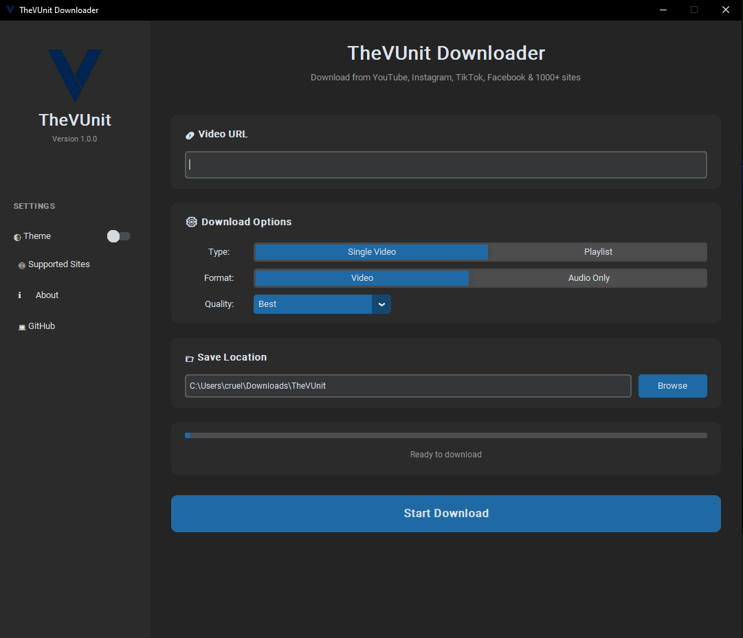 TheVUnit Downloader is a downloading tool made to let you download things easily on social media. Made with ❤ by Ahad#3257