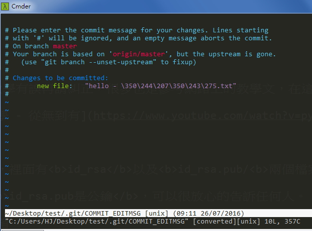 這時候可以使用如下指令,他會跳出編輯視窗給你編輯你上一次的 commit 內容。