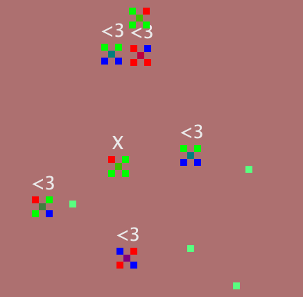 The cells with <3 on the top means that it has a partner and it's going to reproduce