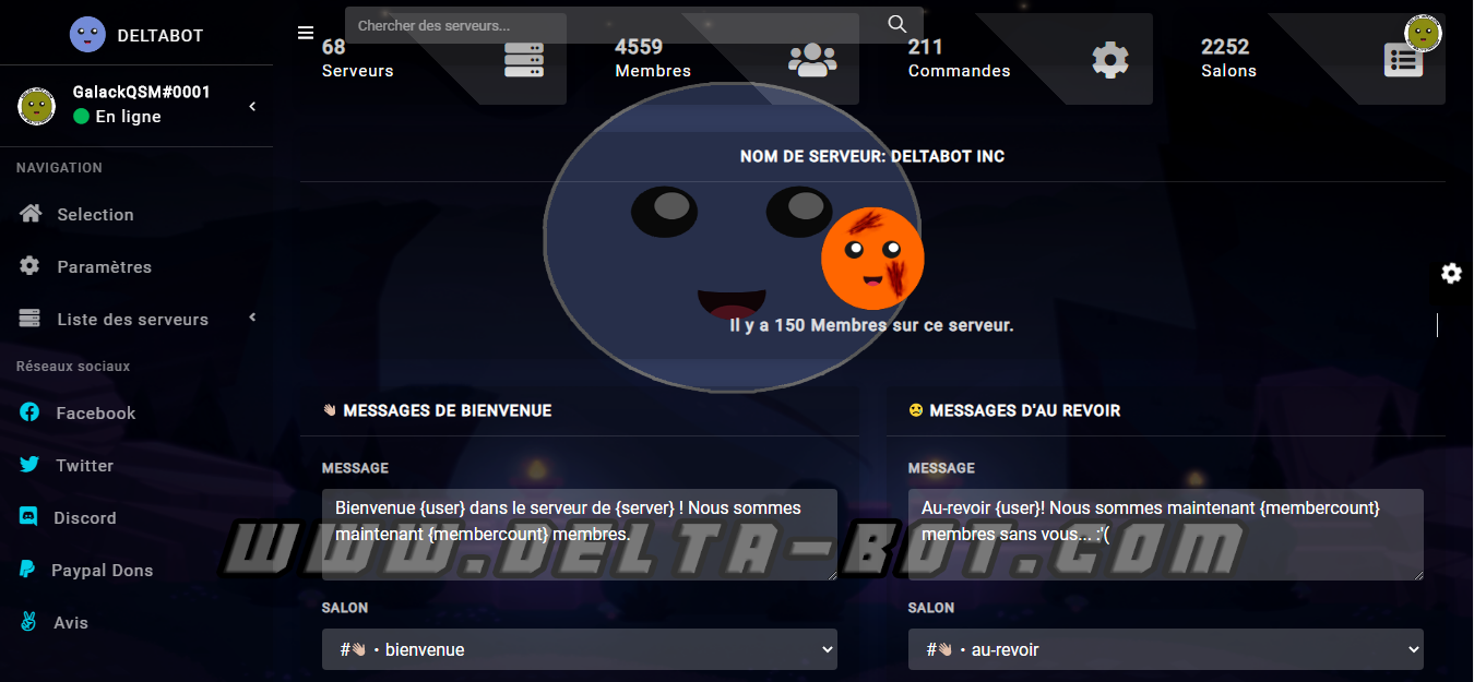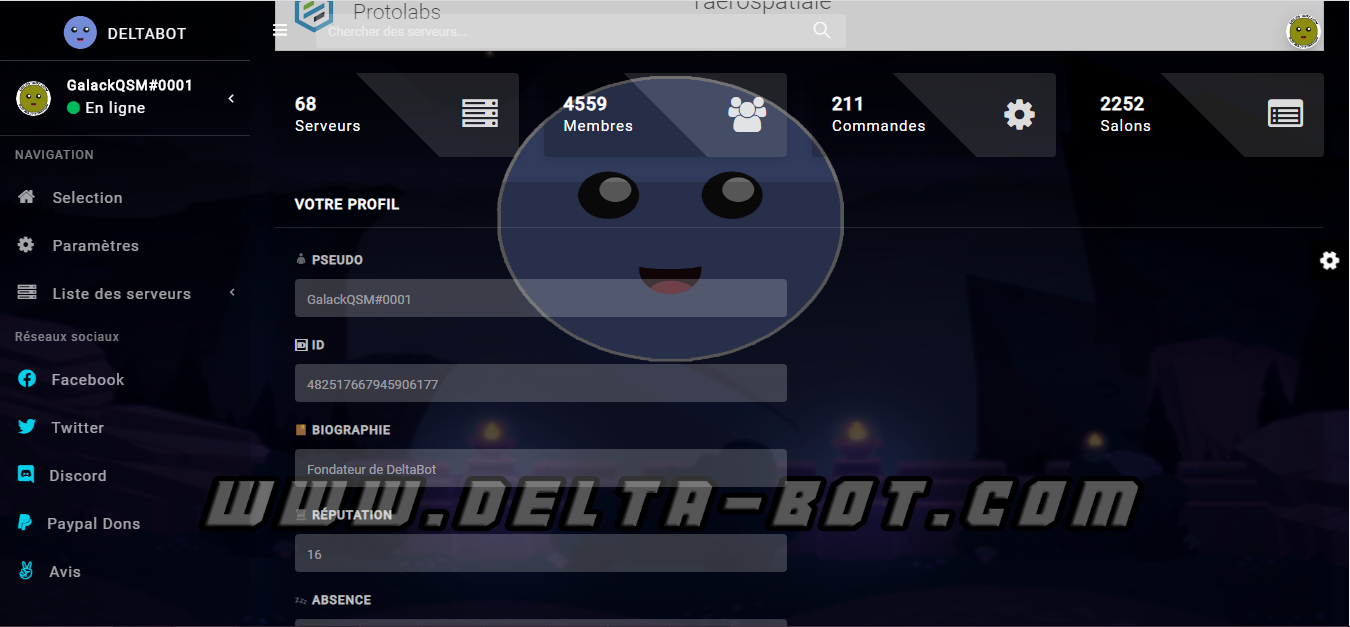 DeltaBot est un bot Discord codé en JavaScript avec Discord.js et Mongoose par GalackQSM.