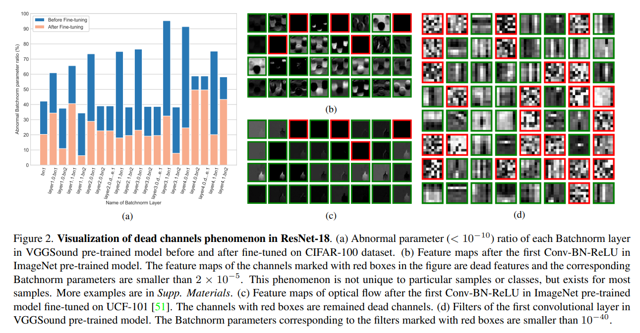 In experiments we find that the channels with abnormal Batchnorm parameters are more likely to produce “dead features ” after ReLU. This phenomenon does not merely exist for particular samples or classes but for most samples, indicating the channels are hard to be activated. We name these channels as “dead channels”. The abnormal