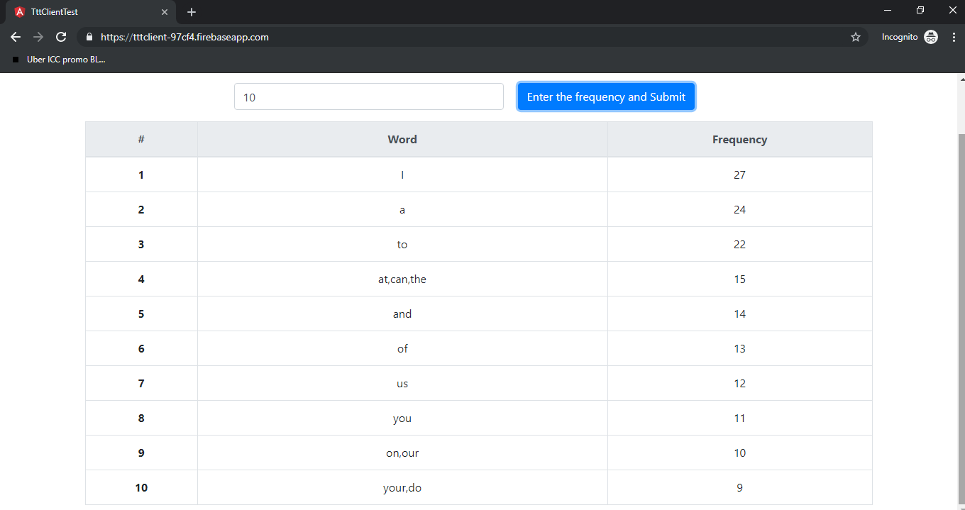 given URL) and returns an array of words . - The function createWordMap(N, wordsArray) takes in the frequency number and the array of words, gets the count of each word.