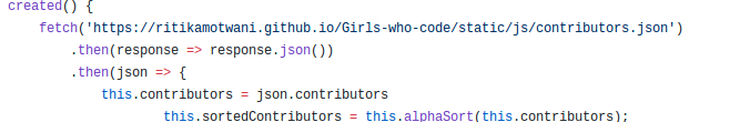 The link has to be changed so that people can add themselves. https://opencode18.github.io/Girls-who-code/static/js/contributors.json. This is the link from where the data has to be fetched.