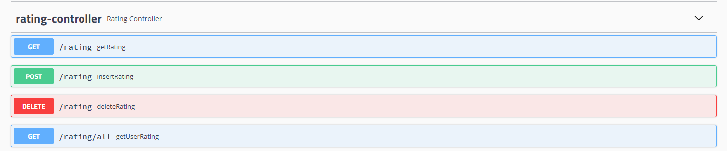 - deleteRating : 추후 사용자가 자신의 별점에 관해서 관리를 할 수 있게 된다면, 이를 삭제할 수 있게 만들게 하는 API입니다.