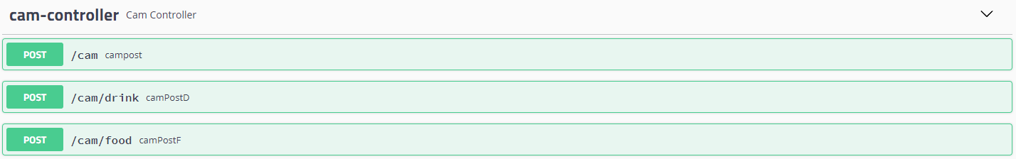 - camPost , camPostD, camPostF : 문자열로 사진을 찍었을 시 출력되는 모든 데이터를 인자로 받아 Flask 서버에서 DB에 존재하는 아이템의 이름과 유사도 검사를 한 뒤 이에 맞는 이름들을 출력해주는 API입니다 .