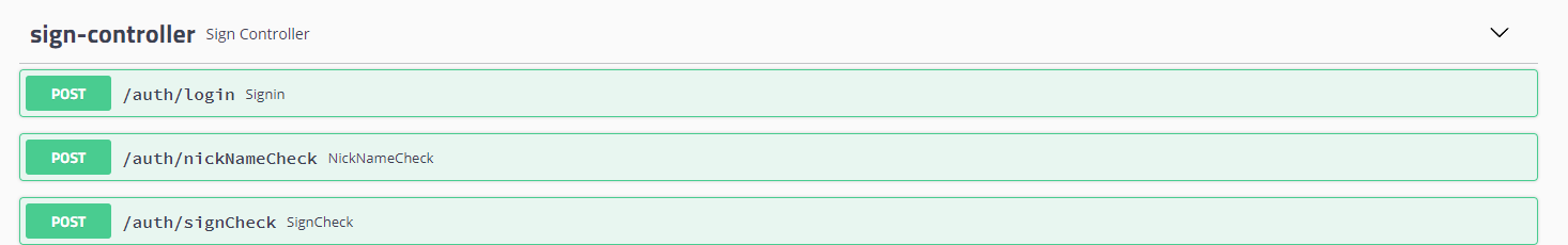 - SignCheck : 카카오에서 제공되는 유저의 고유 ID에 관하여 조사하며 만약 존재한다면, 즉시 로그인을 하고 없다면 즉시 회원가입 페이지로 넘어가게 하는 API입니다.