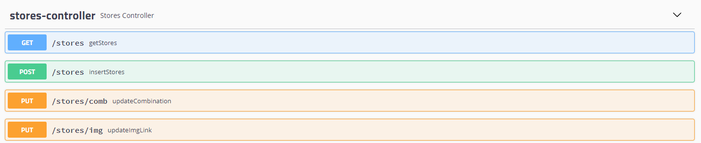 - insertStores : 가게에 대한 정보를 최초로 접근할 시 사용되는 API입니다. 카카오톡에 존재하는 데이터로 생성을 합니다.