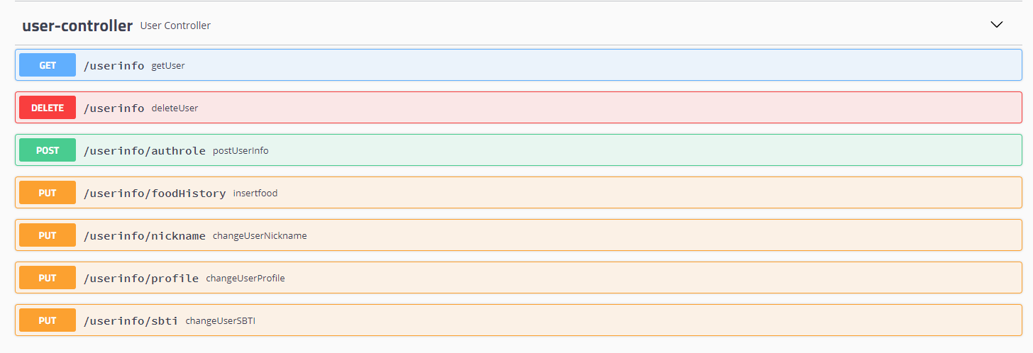 - (임시) insertfood : 사용자가 먹었던 음식에 대해서 저장합니다. (미사용)
