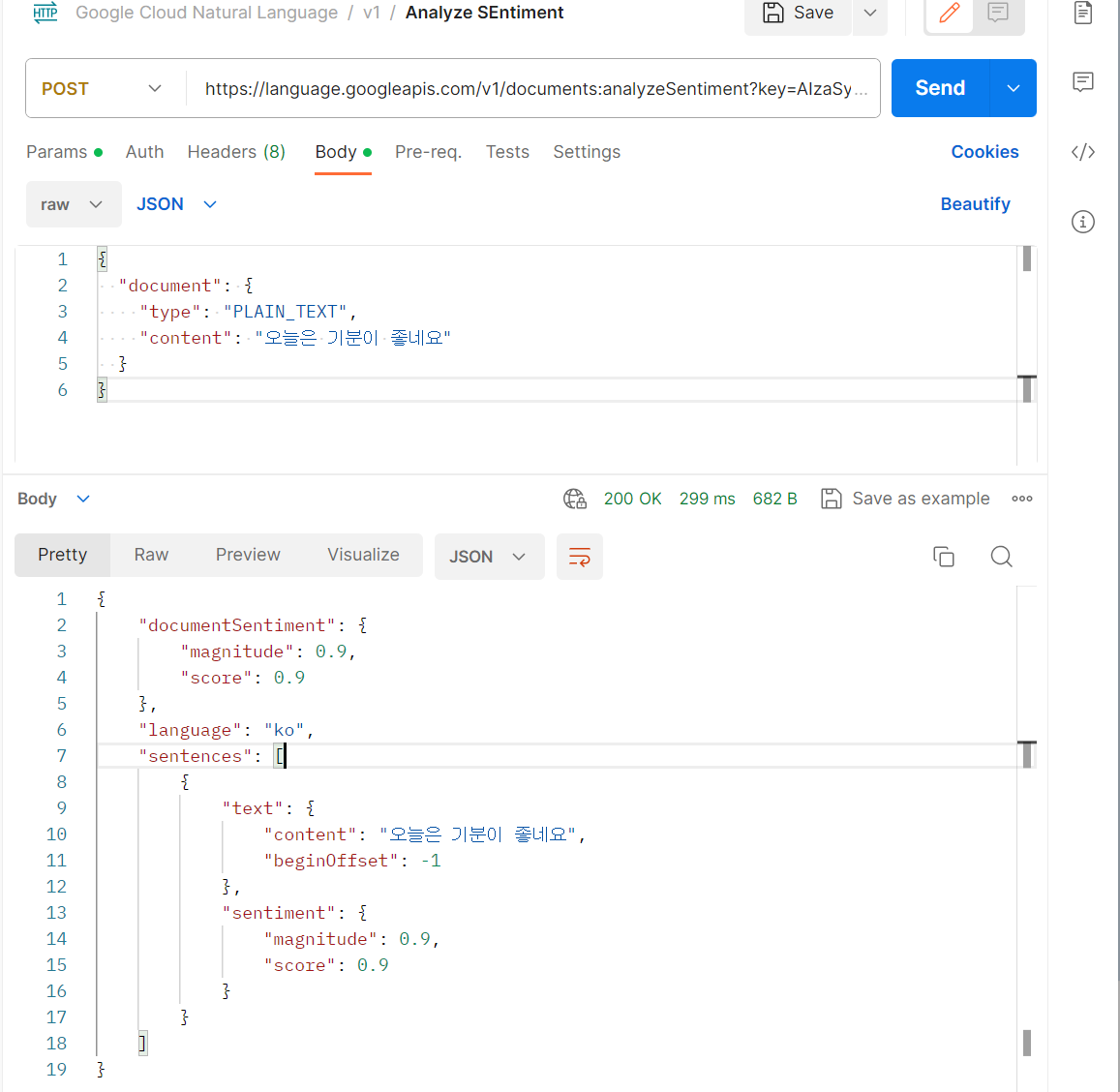 https://cloud.google.com/natural-language/docs/reference/rest/v1/documents/analyzeSentiment?apix_params=%7B%22resource%22%3A%7B%22document%22%3A%7B%22type%22%3A%22PLAIN_TEXT%22%2C%22content%22%3A%22%EC%A6%90%EA%B1%B0%EC%9B%8C%22%7D%2C%22encodingType%22%3A%22UTF8%22%7D%7D