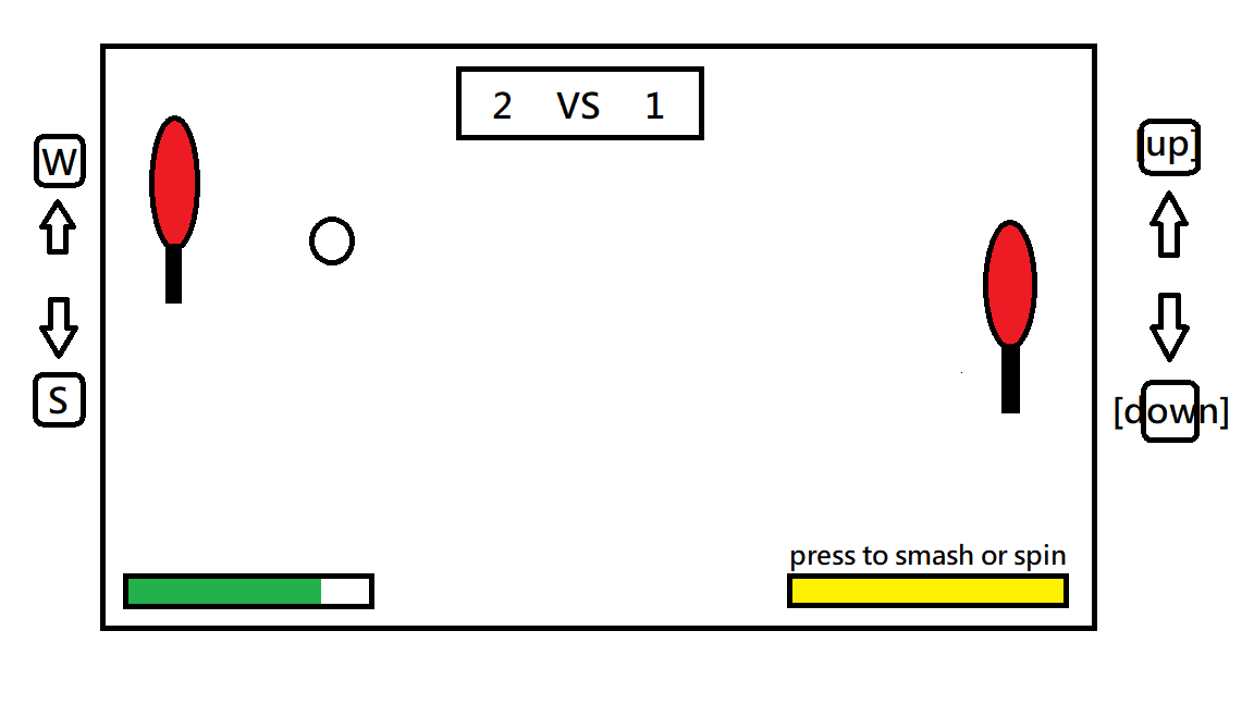 Each player can control a ping pong racket with keyboard keys. They are targeting to catch the ball and return it with the racket. If one fails to catch the ball, the other player scores.