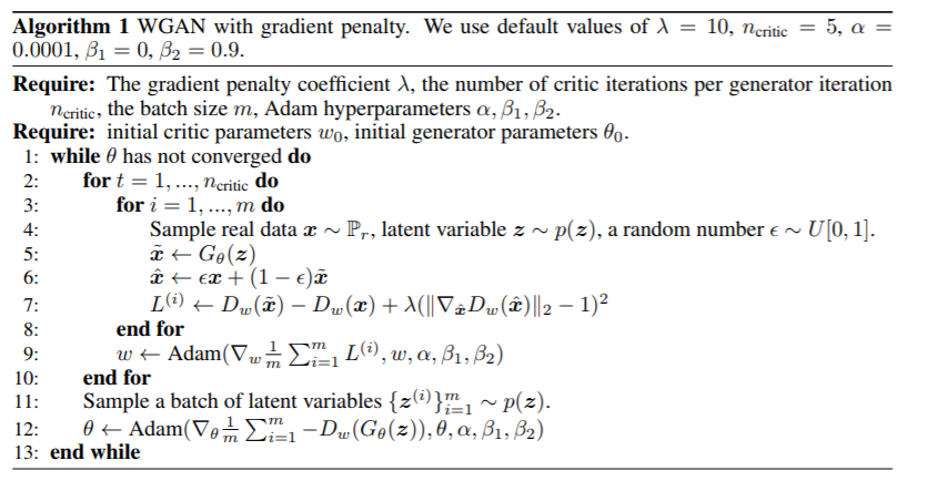 可以从算法中看出损失函数除了原先的部分,还加入了一个梯度惩罚项。