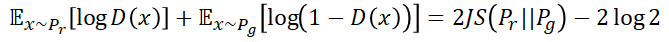 这个式子涉及到的物理意义被称为KL散度(Kullback-Leibler divergence)和JS散度(Jensen-Shannon divergence)两个相似度衡量指标。具体的数学表达式如下: