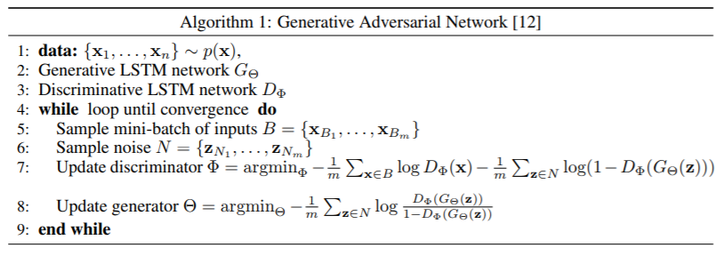 - Key Points:这篇论文是比较早期利用GANs进行文本生成任务的尝试,通过循环神经网络(RNN+LSTM)作为生成器,采用光滑近似(smooth approximation)的优化理论来逼近真实样本分布。
