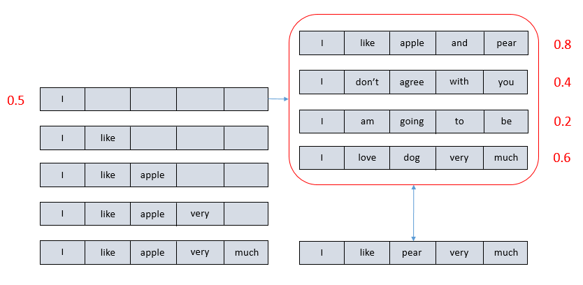 最直观的想法就是将整句的分数当做每一个部分单独的分数,但是这样的方式会让句子的成分承受相同的代价,不符合我们直观的感觉。因为造成句子不好的原因可能往往来自单独的一些部分,而不是全部。