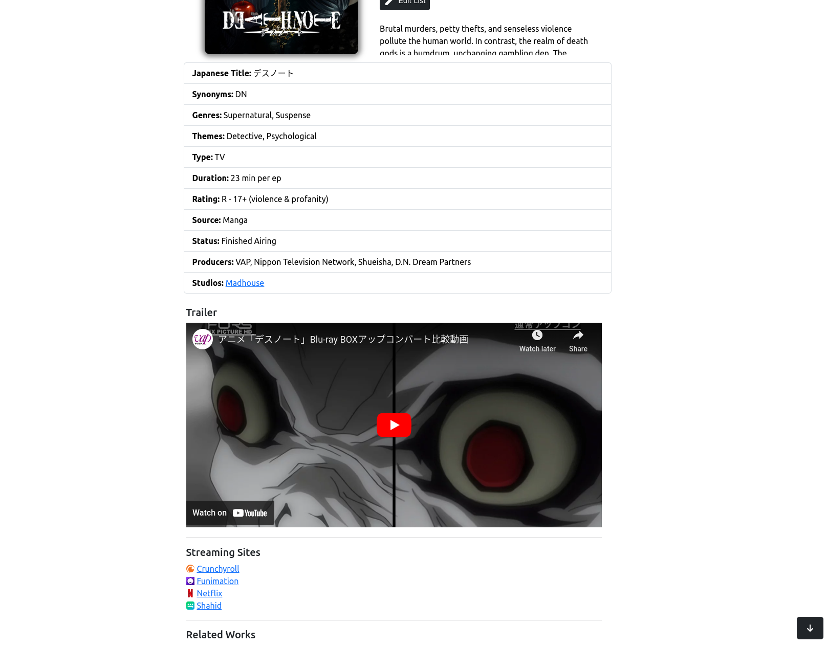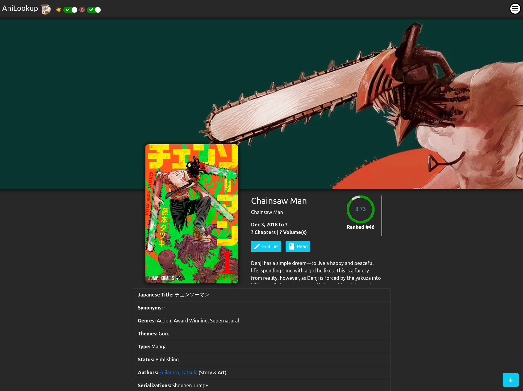 It makes use of various API technologies such as Jikan V4, Kitsu, and Mangadex.