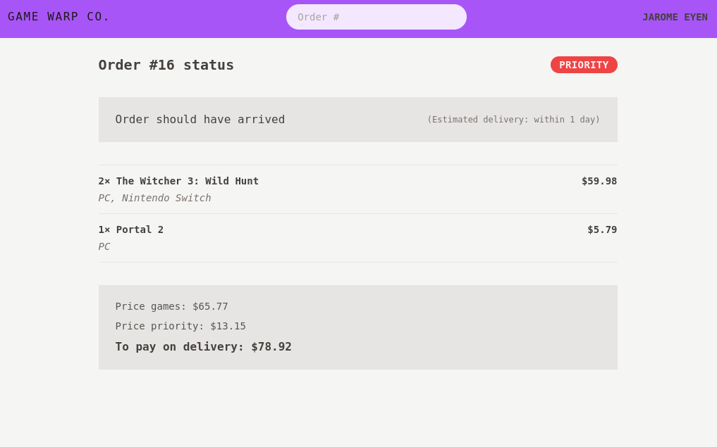 Gamewarp is a React web application that offers a simple demo of a video game webshop.