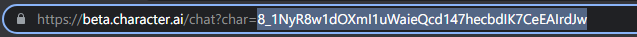 For example, if you go to the chat page of the character Test Character you will see the URL https://character.ai/chat/chat?char=5f7f9b9b9b9b9b9b9b9b9b9b.