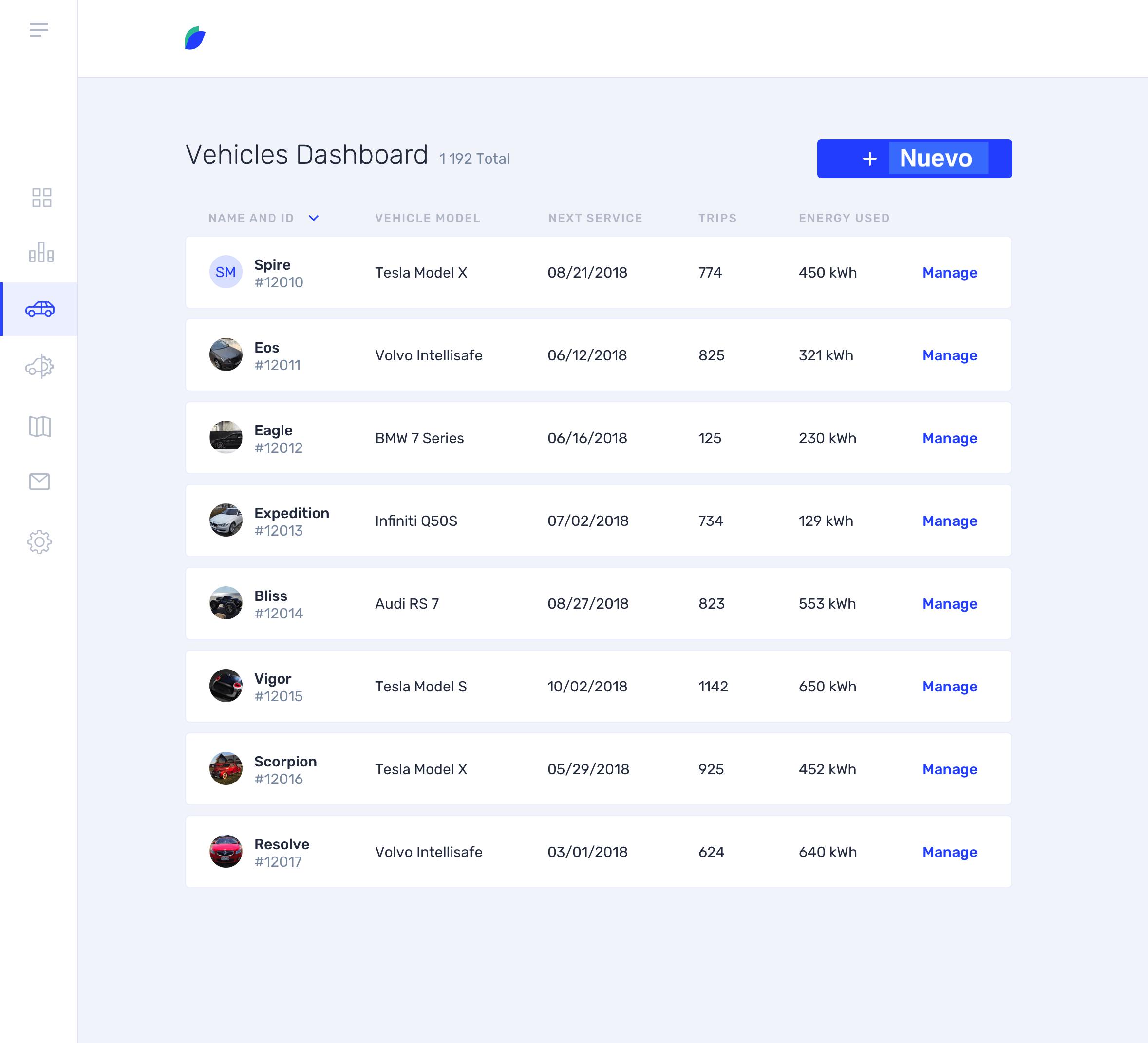 - url: esta columna abrirá una nueva pestaña. El label del link debe llamarse "Detalle" y el estilo del texto debe ser como "Manage" de la referencia)