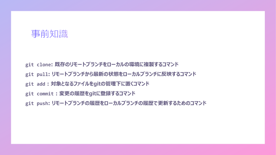 前回、私が発表したGitおよびGithubのスライド上げときます!