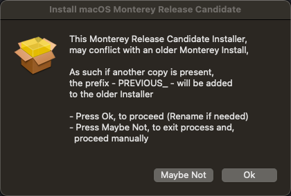 Now also check if a previous release is already present and if the case will be renamed to PREVIOUS_Install xxx.app