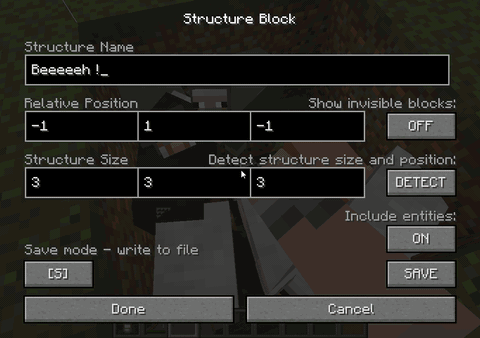 - Setup a structure block in save mode