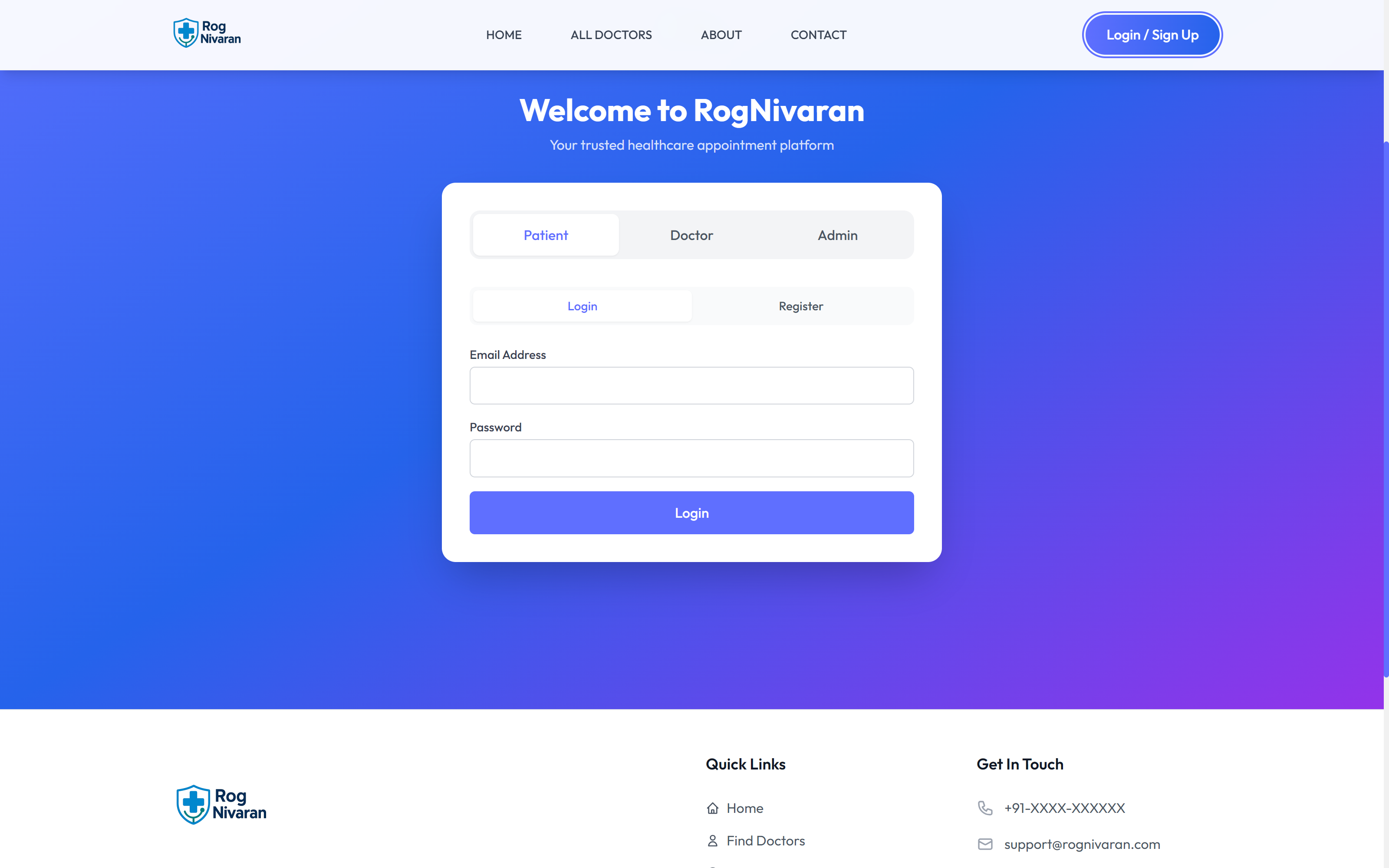 RogNivaran is a comprehensive healthcare appointment booking platform designed specifically for the Indian market. Our mission is to bridge the gap between patients and healthcare providers, making quality healthcare accessible to everyone.