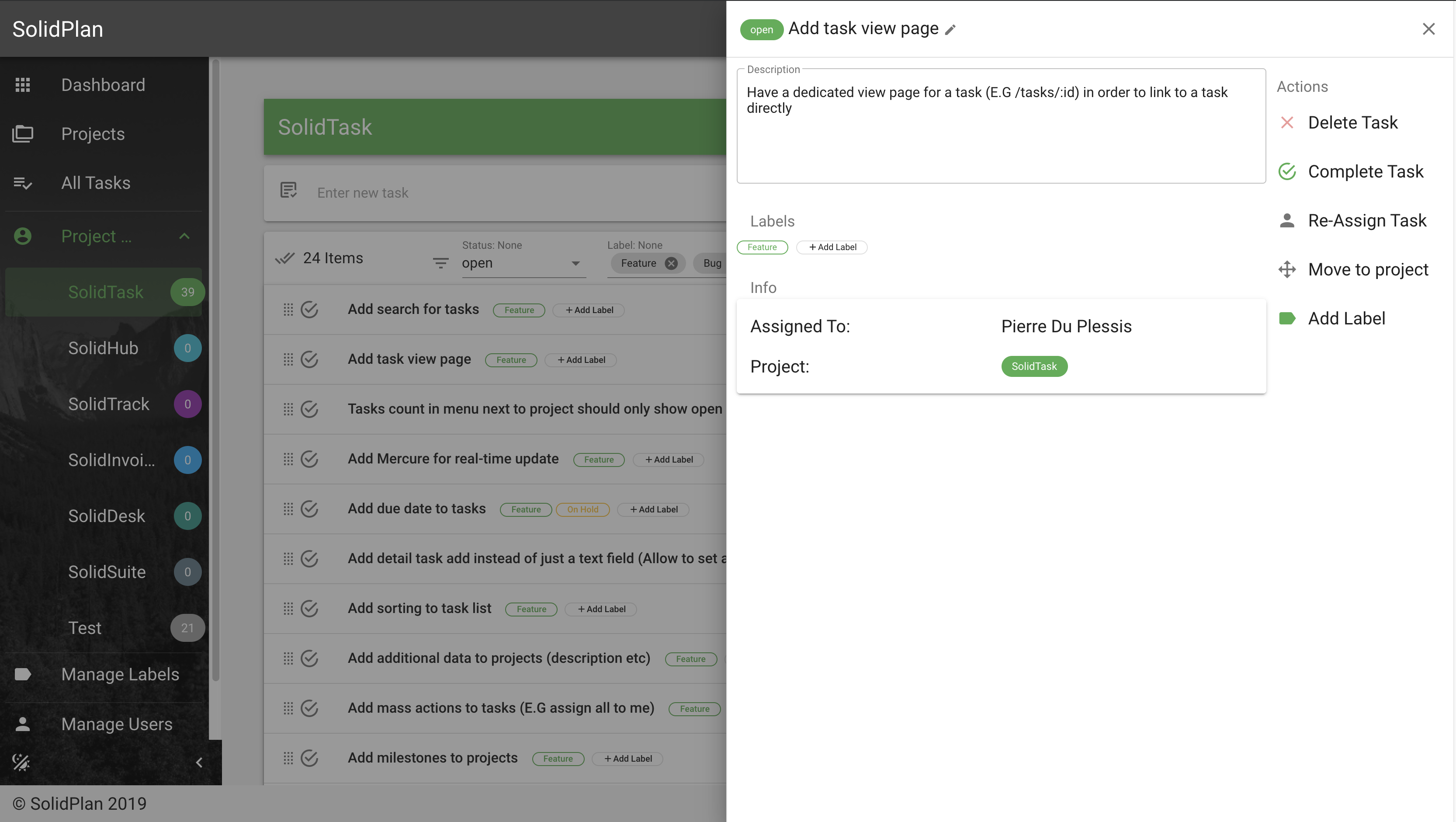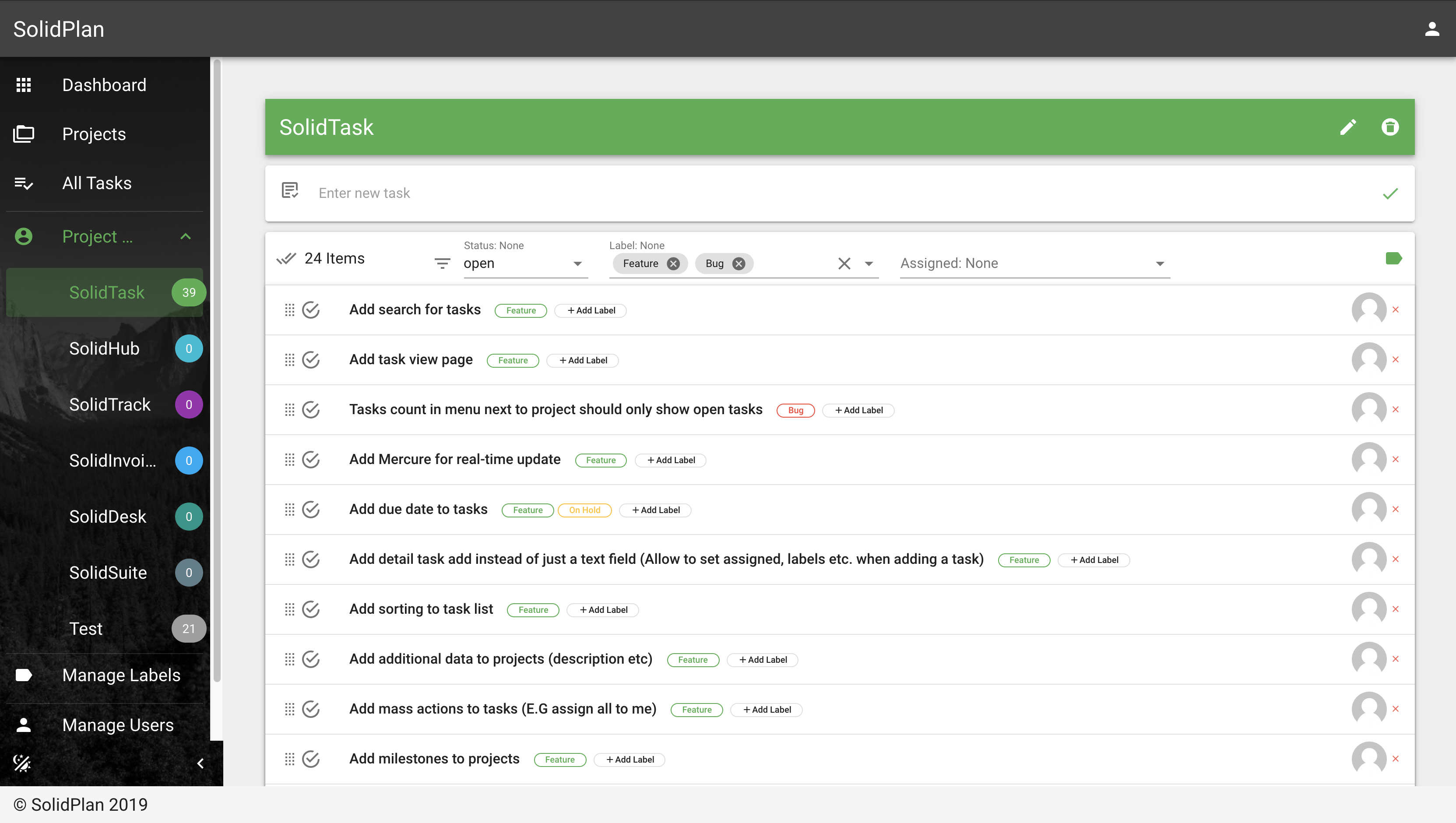 SolidPlan is an open-source application to manages simple projects and tasks.