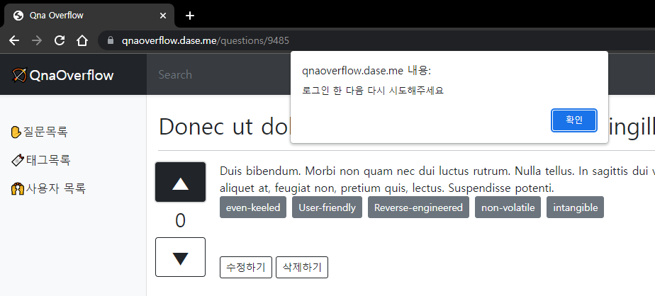 - 스택 오버플로우의 UI와 기능을 사용자 요구사항으로 가정하고 만든 질문게시판 서비스입니다 😁