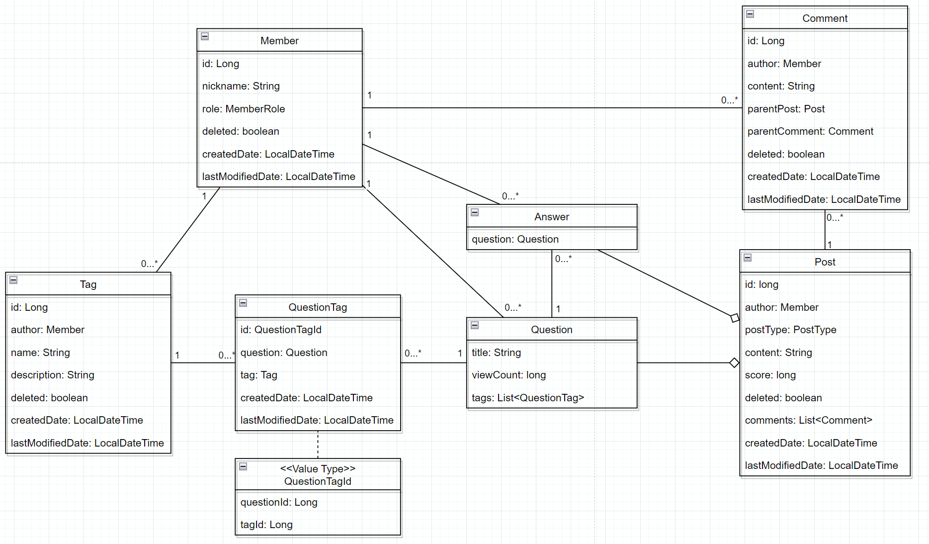 질문글(Question)과 답변글(Answer)의 공통기능을 추출하여 게시글(Post) 클래스를 만들었습니다.