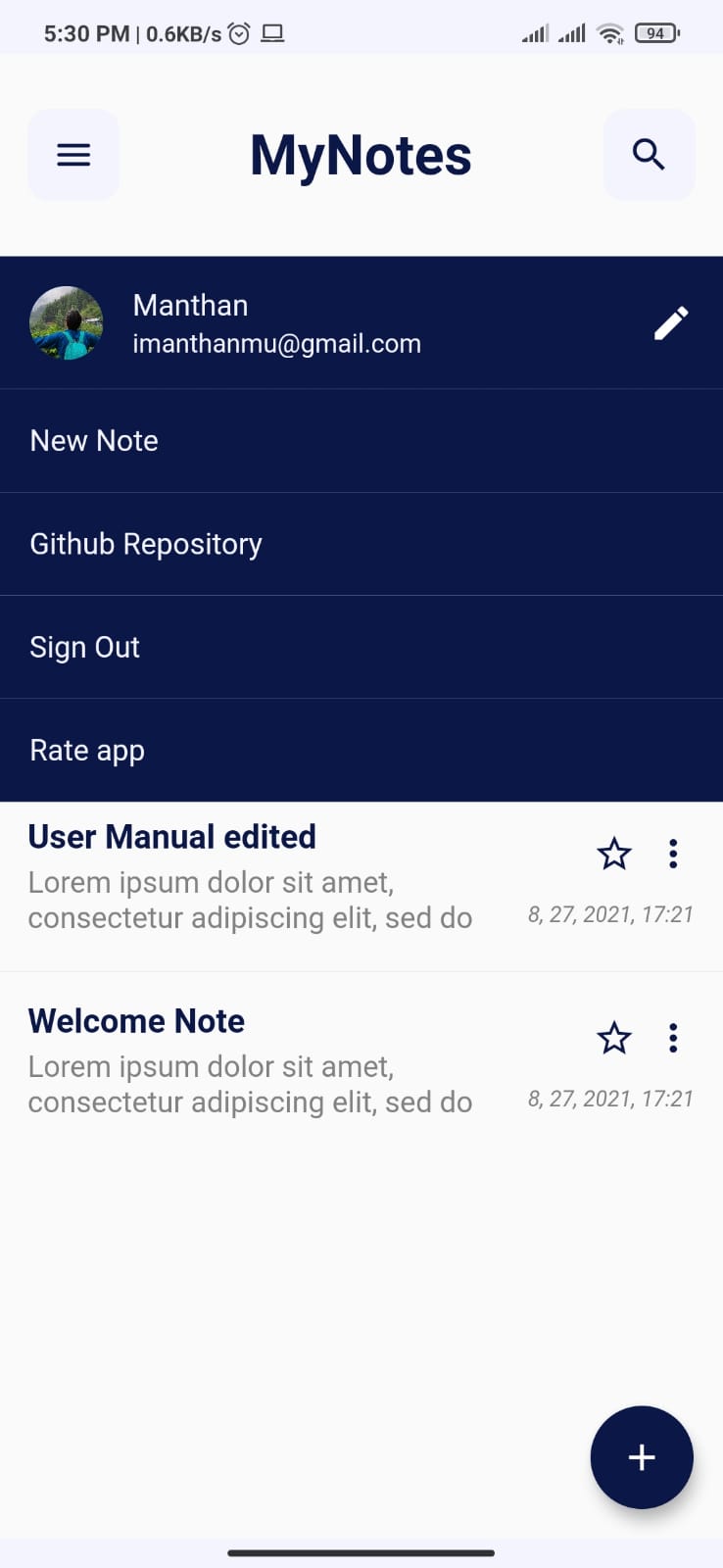- Adding new notes with title, body and images.