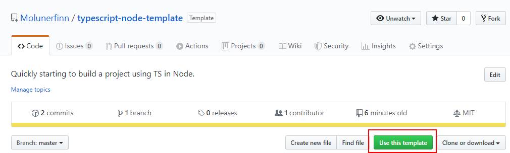 TypeScript-Node-Template Quickly starting to build a project using TS in Node. Start Using this project as a template for you: Usage Development npm run dev It will enter watch-mode with tsc Production npm run build It uses rollup for building production codes. License MIT Copyright (c) 2020 Molunerfin