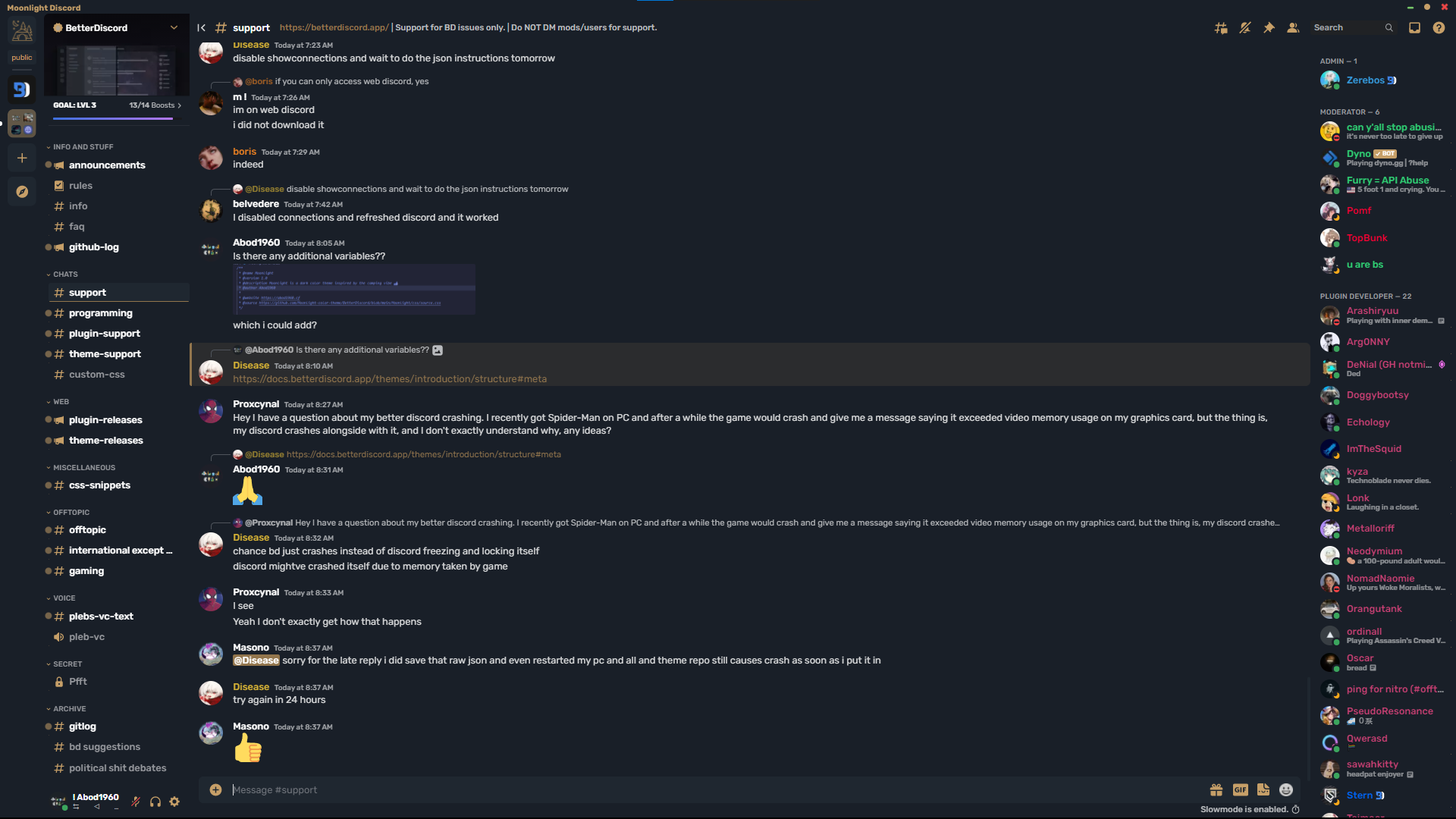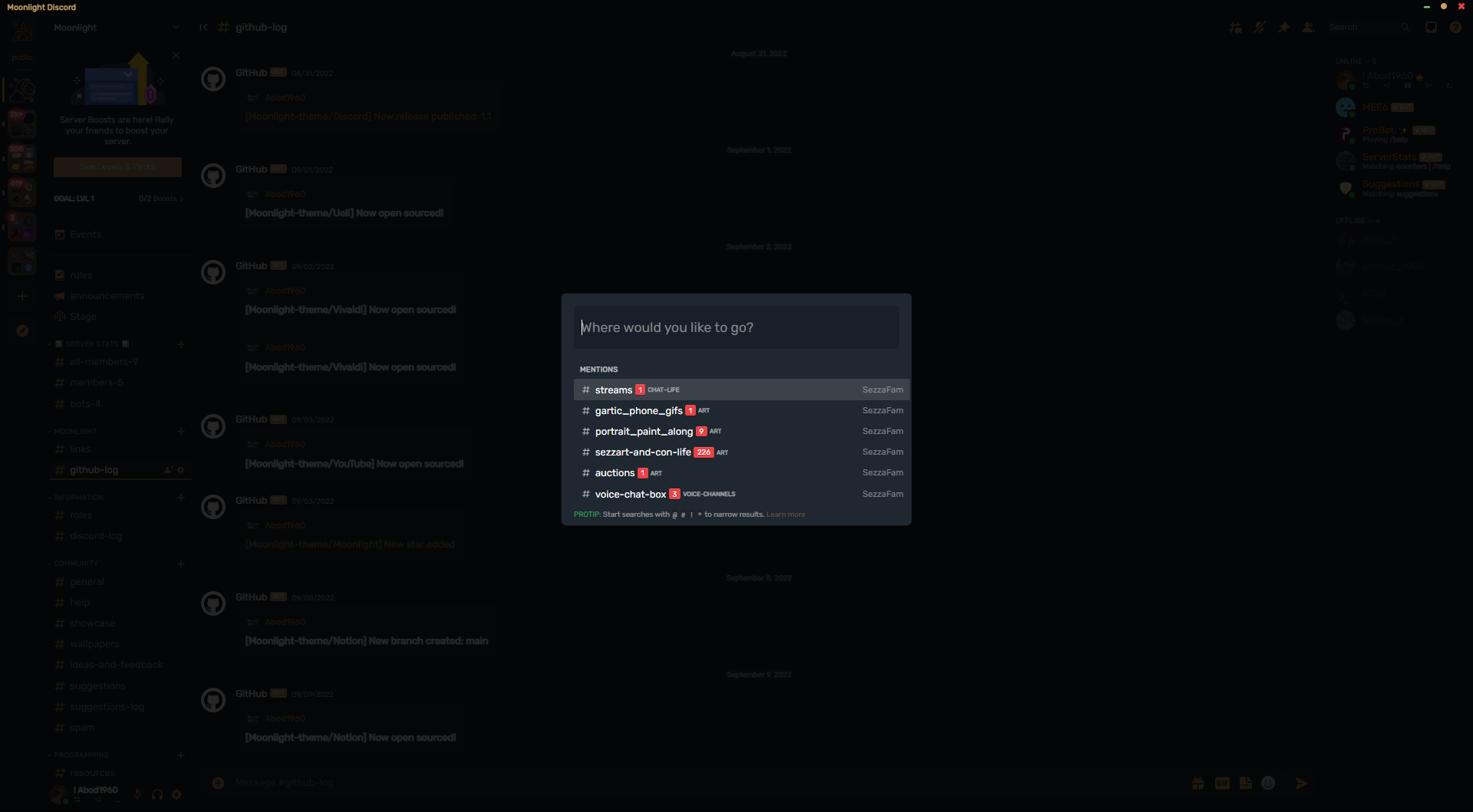 Moonlight is a dark color theme for discord. matching the color palette of moonlight theme.