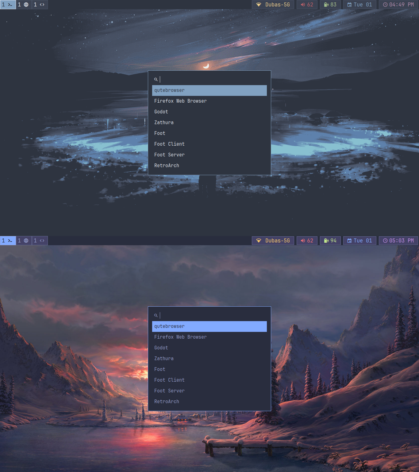 Scripts and configs are written with portability in mind, but things may break. Do not blindly use this setup, use it at your own risk. (also I kinda need to add text here so the formatting looks nice :))