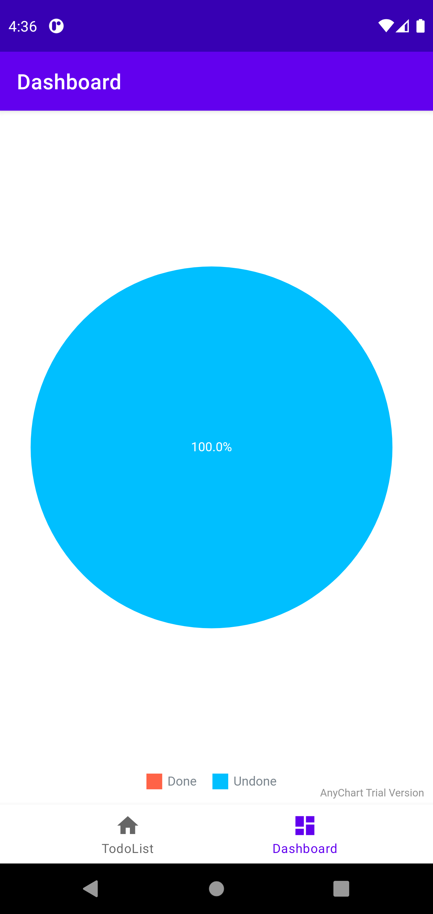 TodoList Information min sdk 25( android 7.1) target sdk 30 (android 11) Library android Material design android Room SQLLite Anychart Demo Image