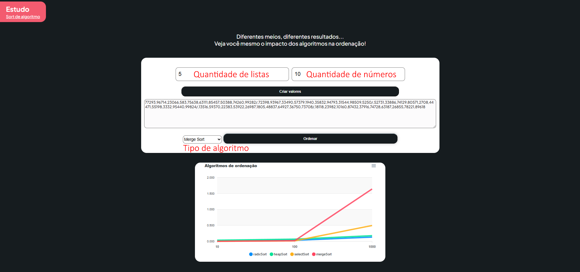 - Tipo de algoritmo: Algoritmo que serÔ usado para o teste de performance por ordenação;