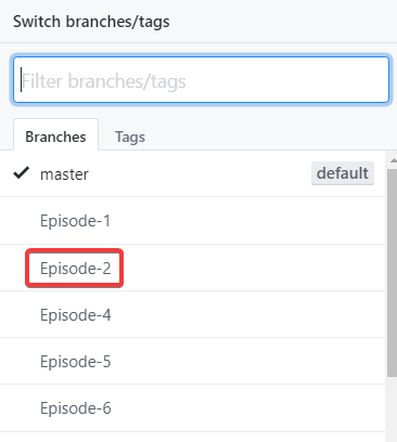 Each episode has its own branch in this repo.